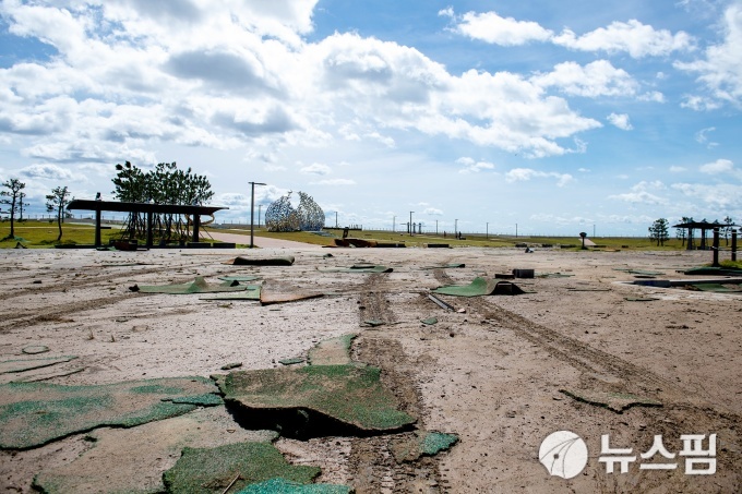 | 지난 9월 3일과 7일 잇따라 경북 동해안을 강타한 태풍 '마이삭'과 '하이선'의 내습으로 쑥대밭으로 변한 영덕군 강구항 해파랑공원.[사진=영덕군] 2020.09.15 nulcheon@newspim.com |
