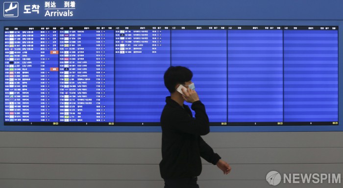 [영종도=뉴스핌] 이형석 기자 = 코로나바이러스감염증-19 신규 확진자가 113명 증가해 누적 2만2천504명을 기록한 16일 오전 인천공항 항공기 운항 현황판이 반 이상 비어져 있다. 2020.09.16 leehs@newspim.com