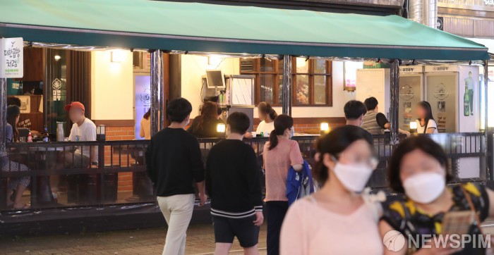 [부천=뉴스핌] 김학선 기자 = 20일 코로나19 확산 차단을 위해 비수도권에서 시행중인 '사회적 거리두기 2단계' 조치가 오는 27일까지 연장됐다. 비수도권의 2단계 조치는 20일 종료될 예정이었으나 수도권과 마찬가지로 1주일 더 유지하기로 했다. 이에 따라 실내 50인·실외 100인 이상의 집합금지 조치와 고위험시설 집합금지 조치 등 기존의 2단계 방역 조치가 계속 적용된다. 이날 밤 부천의 한 먹자골목에서 식당들이 영업을 하고 있다. 2020.09.20 yooksa@newspim.com