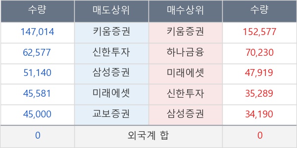 [표] 외국인ㆍ기관 순매매량 (단위 주)