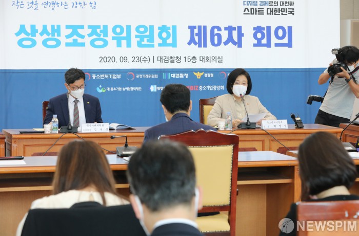[서울=뉴스핌] 백인혁 기자 = 박영선 중소벤처기업부 장관이 23일 오후 서울 서초구 대검찰청에서 열린 제6차 상생조정위원회에서 모두발언을 하고 있다. 2020.09.23 dlsgur9757@newspim.com