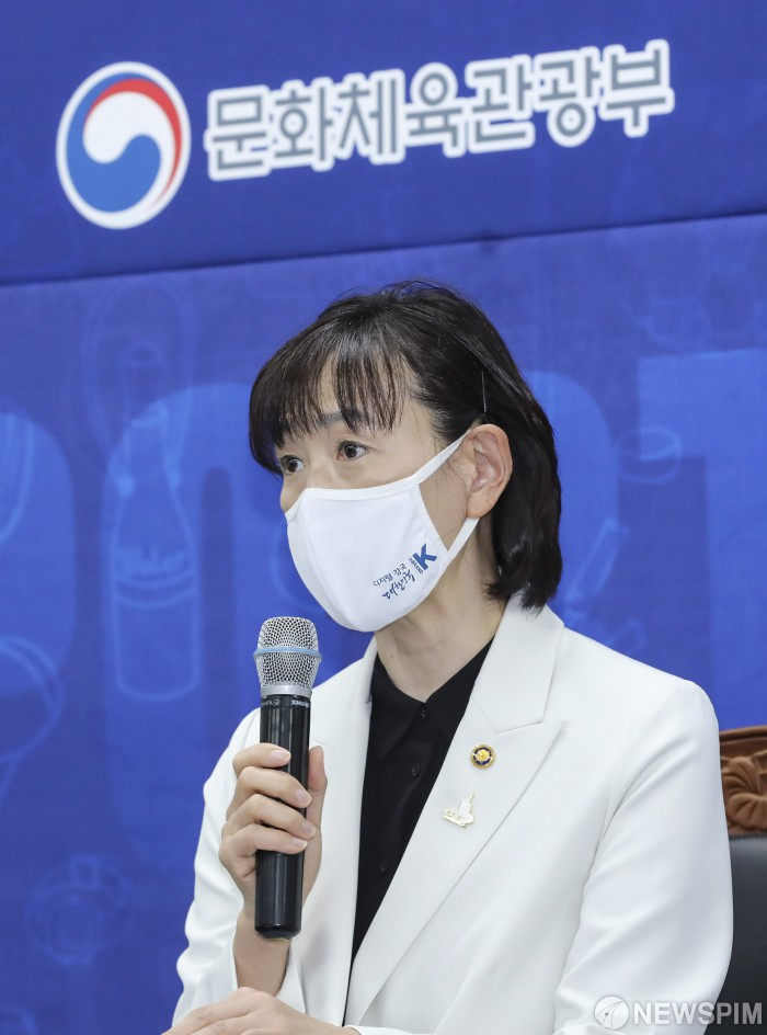 [서울=뉴스핌] 이한결 기자 = 최윤희 문화체육관광부 2차관이 23일 오후 서울 서대문구 스포츠윤리센터 교육장에서 열린 스포츠 인권 보호 및 비리 근절 위한 업무협약식에서 모두발언을 하고 있다. 2020.09.23 alwaysame@newspim.com