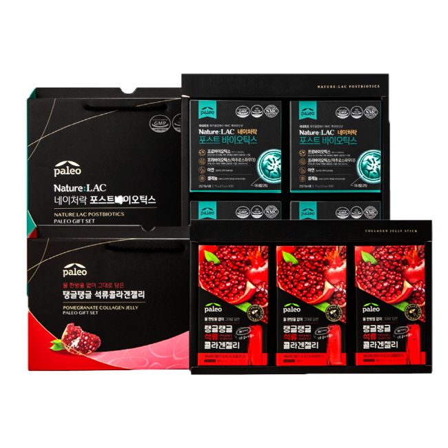 이번 팔레오 2020년 추석 선물세트는 △NMC 특허 유산균 '네이처락 포스트바이오틱스 유산균' △간편 섭취가 가능한 '타트체리즙 1+1' △ 물을 넣지 않은 석류콜라겐 젤리스틱 △ 100% NFC 착즙 'ABC쥬스' △ 흡수율 높은 저분자 피쉬콜라겐 스틱 △ 휴대가 편리한 비타민나무스틱 등으로 구성됐다.