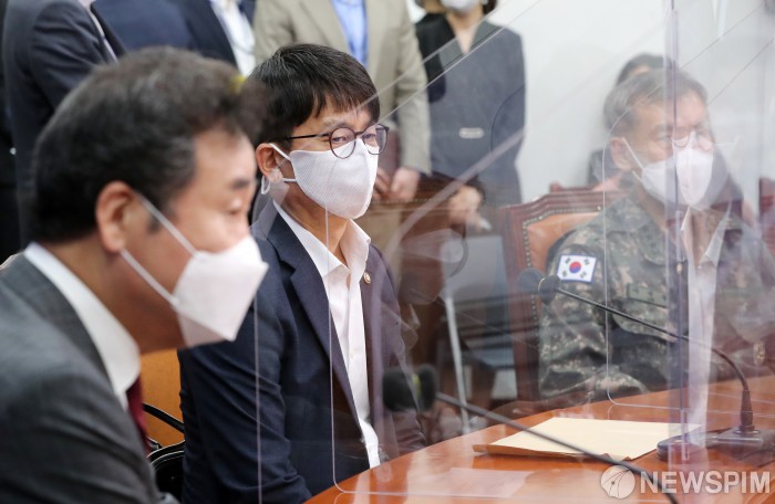 [서울=뉴스핌] 이형석 기자 = 박재민 국방부 차관이 24일 더불어민주당 국회 당대표실을 방문해 북한 해역 실종 선원 피격 사건에 대해 보고하고 있다. 2020.09.24 leehs@newspim.com