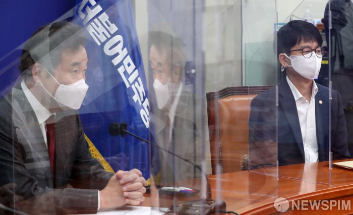 [서울=뉴스핌] 이형석 기자 = 박재민 국방부 차관이 24일 더불어민주당 국회 당대표실을 방문해 북한 해역 실종 선원 피격 사건에 대해 보고하고 있다. 2020.09.24 leehs@newspim.com