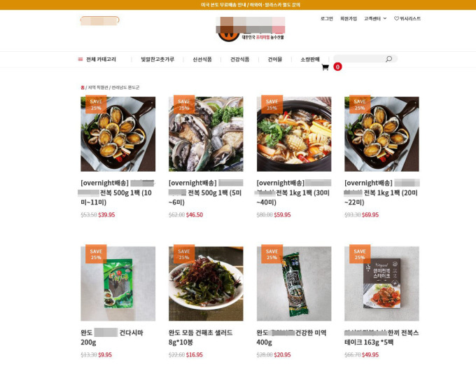 [완도=뉴스핌] 지영봉 기자 = 전남 완도군은 내달 4일까지 미국 대형 울타리USA 온라인 몰에서 '완도 수산물 미국 온라인 판촉전'을 개최한다고 24일 밝혔다.
