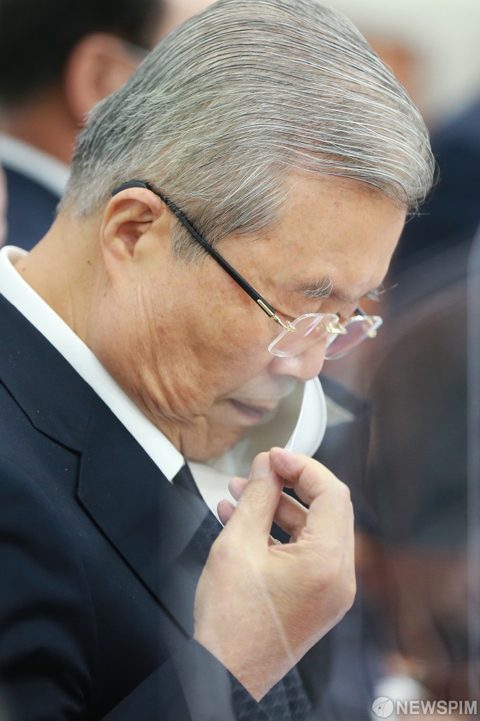 [서울=뉴스핌] 이형석 기자 = 김종인 국민의힘 비상대책위원장이 25일 오전 서울 여의도 국회에서 북한의 우리 공무원 피격사건 관련 대국민 입장발표를 앞두고 마스크를 착용하고 있다. 2020.09.25 leehs@newspim.com