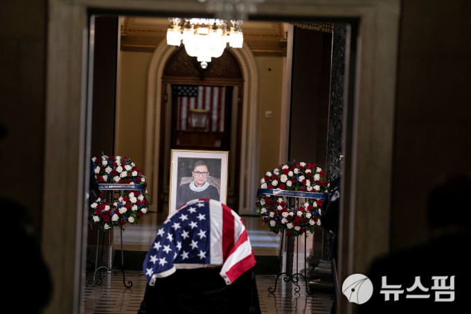 | [워싱턴 로이터=뉴스핌] 김민정 기자 = 25일(현지시간) 고(故) 루스 베이더 긴즈버그 대법관의 관이 미 의회 의사당에 도착했다. 2020.09.26 mj72284@newspim.com |