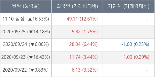 [표] 외국인ㆍ기관 순매매량 (단위 만주)