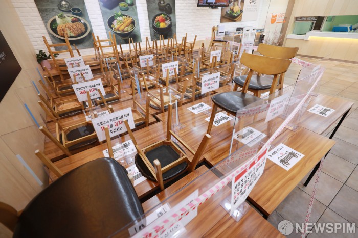 [용인=뉴스핌] 이형석 기자 = 추석 연휴를 하루 앞둔 29일 오전 경기 용인시 부산방면 기흥휴게소에 코로나19 감염 예방을 위해 매장 내 테이블 사용이 금지되어 있다. 추석 연휴 기간 고속도로 휴게소에서는 매장 내 취식이 금지되고 포장만 허용된다. 2020.09.29 leehs@newspim.com
