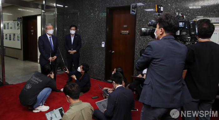 [서울=뉴스핌] 최상수 기자 = 김종인 국민의힘 비상대책위원장이 29일 서울 여의도 국회에서 검찰개혁, 북한의 공무원 피격, 추석 등 현안과 관련해 브리핑을 하고 있다. 2020.09.29 kilroy023@newspim.com