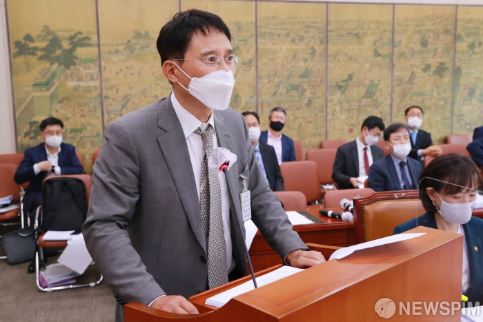 [서울=뉴스핌] 이형석 기자 = 박정렬 해외문화홍보원장이 7일 오후 서울 여의도 국회에서 열린 문화체육관광위원회 국정감사에서 의원 질의에 답하고 있다. 2020.10.07 leehs@newspim.com