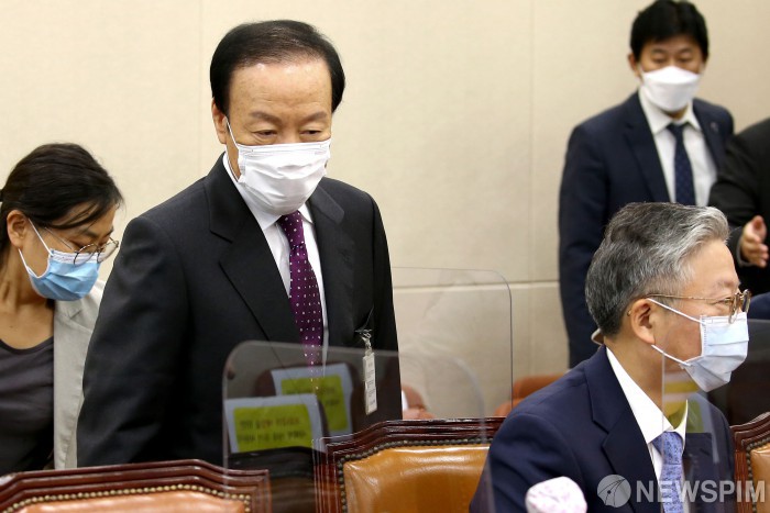 [서울=뉴스핌] 최상수 기자 = 김진문 신성약품 대표가 8일 오후 서울 여의도 국회에서 열린 복지부, 질병관리청에 대한 국정감사에 출석하고 있다. 2020.10.08 kilroy023@newspim.com