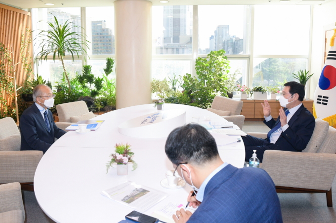 | 이용섭 광주광역시장이 12일 오후 시청 접견실에서 원광연 국가과학기술연구회 이사장을 접견하고 세계김치연구소의 독립적인 유지를 요청했다. [사진=광주시] 2020.10.12 ej7648@newspim.com |