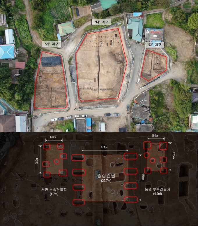| [서울=뉴스핌] 이현경 기자 = 부여 쌍북리 유적 전경(위), 건물지 [사진=문화재청] 2020.10.13 89hklee@newspim.com |