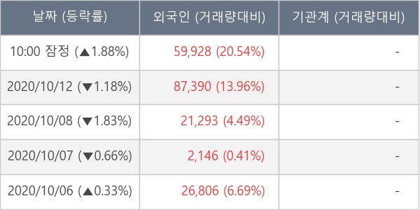 [표] 외국인ㆍ기관 순매매량 (단위 주)