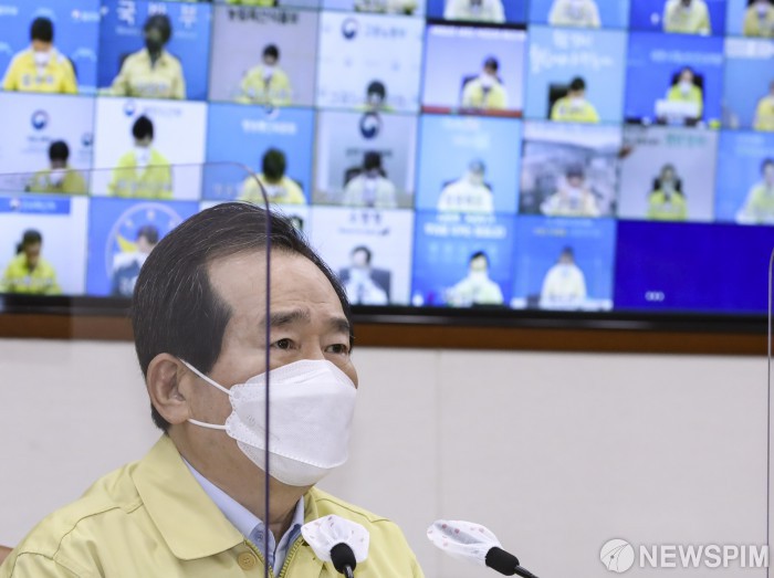 [서울=뉴스핌] 이한결 기자 = 정세균 국무총리가 14일 오전 서울 종로구 정부서울청사 영상회의실에서 열린 코로나바이러스감염증-19(코로나19) 대응 중앙재난안전대책본부 회의를 주재하고 있다. 2020.10.14 alwaysame@newspim.com