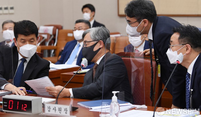 국정감사서 대화 나누는 최재형-최성호-전광춘