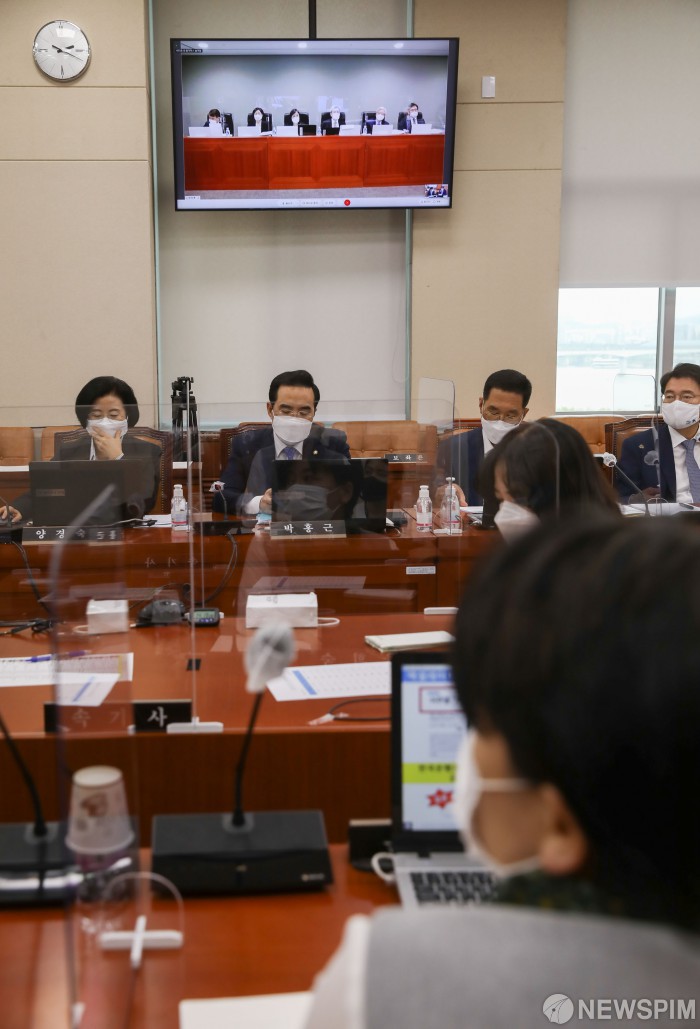 [서울=뉴스핌] 최상수 기자 = 16일 오후 서울 여의도 국회에서 열린 기획재정위원회의 한국은행에 대한 국정감사에서 금융통화위원들이 화상회의로 참석하고 있다. 2020.10.16 kilroy023@newspim.com