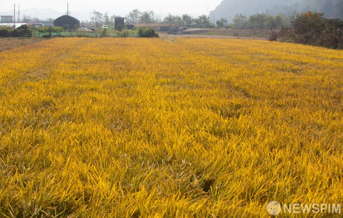 [용인=뉴스핌] 윤창빈 기자 = 완연한 가을 날씨를 보인 20일 오후 경기도 용인시 처인구의 한 논밭에 벼가 노랗게 익어가고 있다. 2020.10.20 pangbin@newspim.com