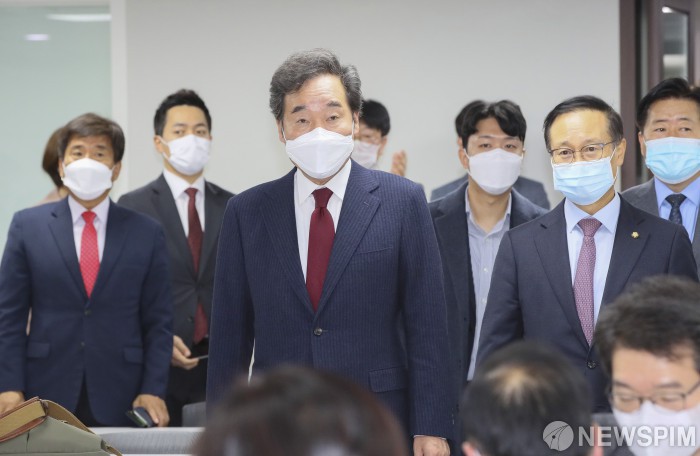[서울=뉴스핌] 이형석 기자 = 이낙연 대표와 홍영표 참좋은지방정부위원장이 27일 서울 영등포구 더불어민주당 당사에서 열린 참좋은지방정부위원회 임명장 수여식에 입장하고 있다. 2020.10.27 leehs@newspim.com