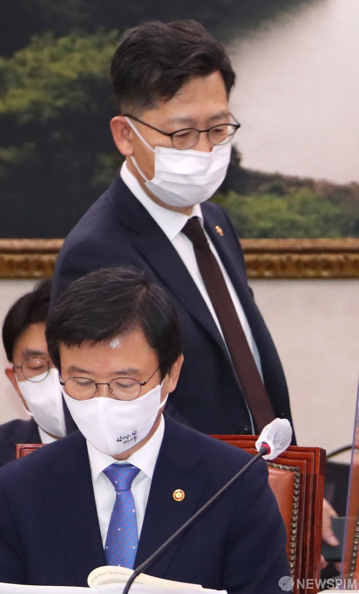 [서울=뉴스핌] 최상수 기자 = 김현수(뒷쪽) 농림축산식품부 장관과 문성혁 해양수산부 장관이 5일 서울 여의도 국회에서 열린 2021년도 예산안과 기금운용계획안을 심의하기 위한 국회 농해수위 전체회의에서 참석하고 있다.