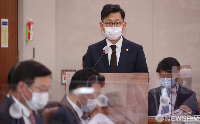 [서울=뉴스핌] 최상수 기자 = 5일 서울 여의도 국회에서 열린 2021년도 예산안과 기금운용계획안을 심의하기 위한 국회 농해수위 전체회의에서 김현수 농림축산식품부 장관이 예산안에 대해 보고하고 있다. 2020.11.05 kilroy023@newspim.com