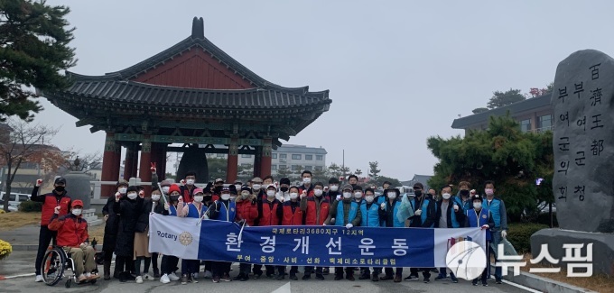 [부여=뉴스핌] 송호진 기자 = 국제로타리 3680지구 12지역은 7일 부여읍 일원에서 환경개선운동을 펼쳤다.