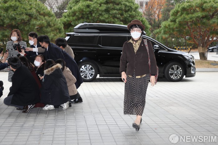 [서울=뉴스핌] 국회사진취재단 = 국회 법제사법위원회의 검찰과 법무부의 특수활동비 집행 내역 현장 검증이 열린 9일 오후 서울 서초구 대검찰청에 김진애 열린민주당 의원이 들어서고 있다. 2020.11.09 photo@newspim.com