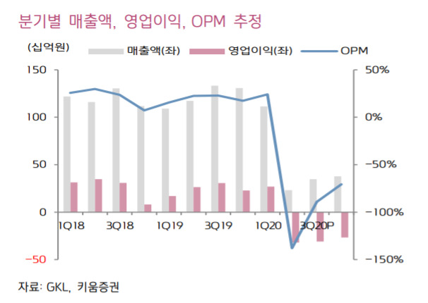 이남수 키움증권 연구원은 "콤프와 판촉비 등 변동비 감소는 두드러졌지만 급여 등 고정비용 축소가 어려워 매출원가가 전년 동기 대비 39.2%만 감소해 손실 지속이 발생했다"고 설명했다.