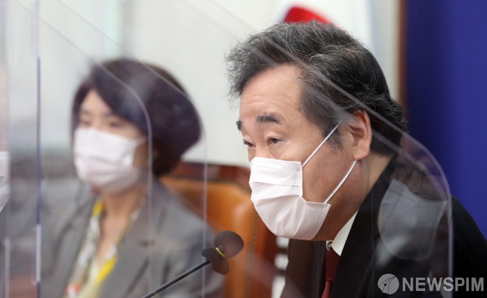 [서울=뉴스핌] 이형석 기자 = 이낙연 더불어민주당 대표가 10일 서울 여의도 국회에서 열린 국난극복K-뉴딜위 국난극복본부 점검회의에서 발언하고 있다. 2020.11.10 leehs@newspim.com