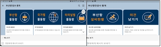 | 부산항만공사 통계 챗봇 메뉴[사진=부산항만공사] 2020.11.11 ndh4000@newspim.com |