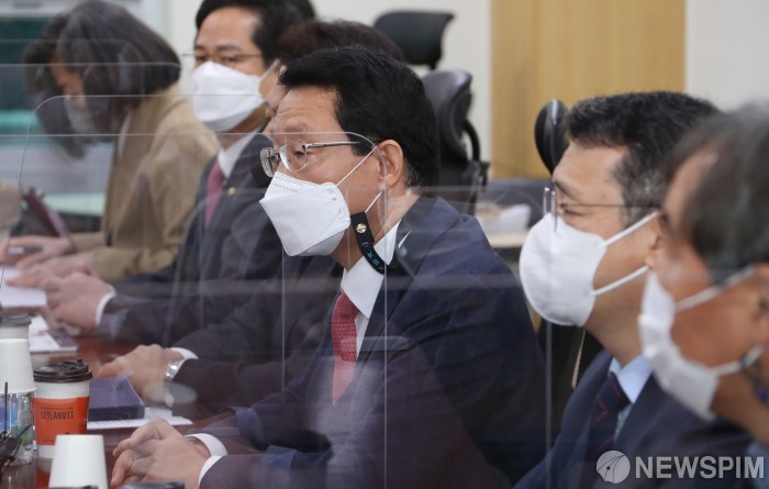 [서울=뉴스핌] 이형석 기자 = 김상훈 국민의힘 재보선 경선준비위원장이 12일 서울 여의도 국회 의원회관에서 열린 경선준비위 회의에서 인사말을 하고 있다. 2020.11.12 leehs@newspim.com
