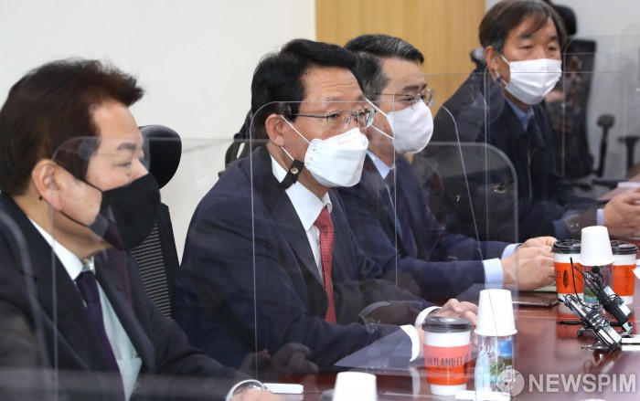 [서울=뉴스핌] 이형석 기자 = 김상훈 국민의힘 재보선 경선준비위원장이 12일 서울 여의도 국회 의원회관에서 열린 경선준비위 회의에서 인사말을 하고 있다. 2020.11.12 leehs@newspim.com