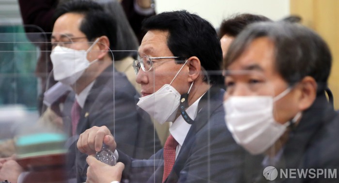 [서울=뉴스핌] 이형석 기자 = 김상훈 국민의힘 재보선 경선준비위원장이 12일 서울 여의도 국회 의원회관에서 열린 경선준비위 회의에서 인사말을 마친 뒤 물을 마시고 있다. 2020.11.12 leehs@newspim.com