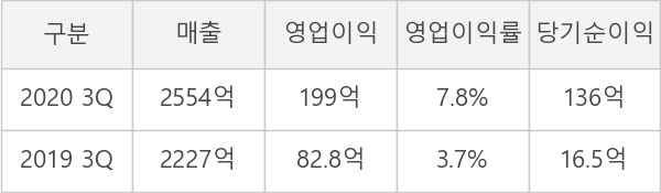 ◆ 3Q 실적, 영업이익 199억원... 전년동기 대비 141% 증가