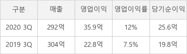 ◆ 3Q 실적, 영업이익 35.9억원 전년동기 대비 57% 증가... 매출액 4.1% 감소