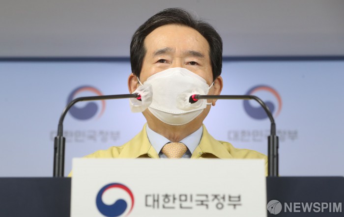 [서울=뉴스핌] 김학선 기자 = 정세균 국무총리가 20일 오전 서울 종로구 정부서울청사에서 코로나19 방역 관련 대국민 담화문을 발표하고 있다. 2020.11.20 yooksa@newspim.com