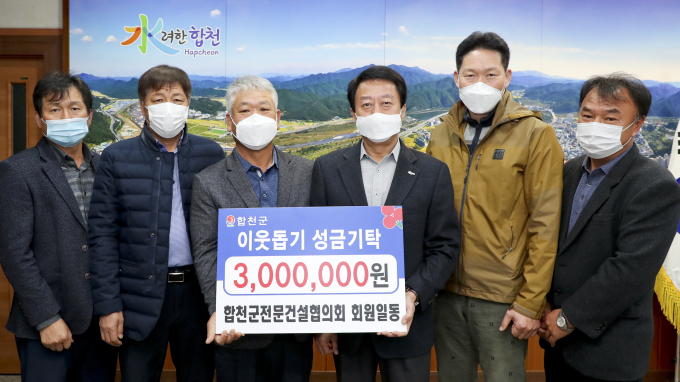 [합천=뉴스핌] 정철윤 기자 = 경남 합천군전문건설협의회는 23일 합천군에 이웃사랑성금 300만원을 기탁했다고 밝혔다.