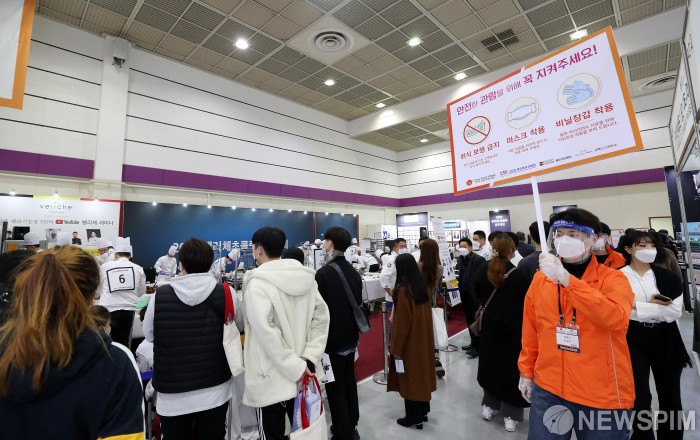 [서울=뉴스핌] 정일구 기자 = 25일 오후 서울 강남구 코엑스에서 열린 국내 최대 식품 전시회 2020 코엑스 푸드위크(제15회 서울국제식품산업전)를 찾은 관람객들이 2020 베이커리 페어 수상작품을 살펴보고 있다. 2020.11.25 mironj19@newspim.com