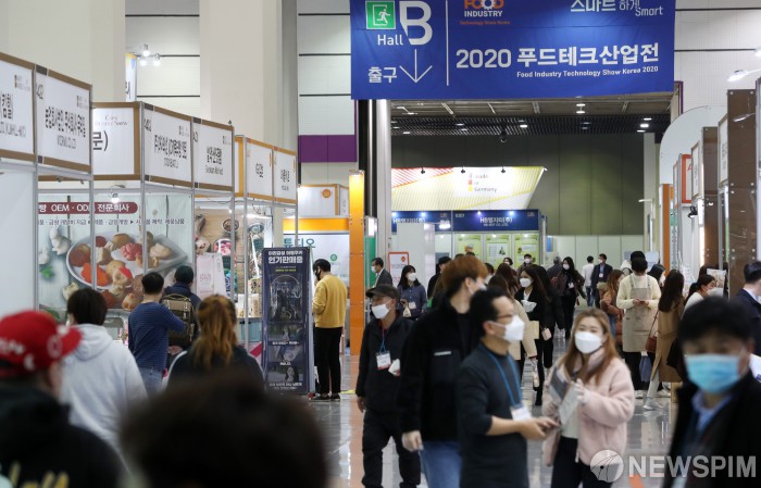 [서울=뉴스핌] 정일구 기자 = 25일 오후 서울 강남구 코엑스에서 열린 국내 최대 식품 전시회 2020 코엑스 푸드위크(제15회 서울국제식품산업전)를 찾은 관람객들이 전시장을 둘러보고 있다. 2020.11.25 mironj19@newspim.com