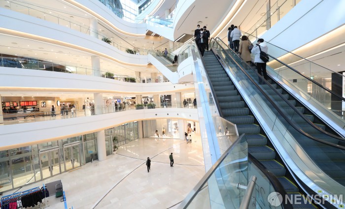 [서울=뉴스핌] 김학선 기자 = 신종 코로나바이러스 감염증(코로나19) 재확산 여파로 수도권의 거리두기가 2단계로 격상된 이후 첫 주말을 맞은 28일 서울의 한 복합쇼핑몰이 한산한 모습을 보이고 있다. 2020.11.28 yooksa@newspim.com