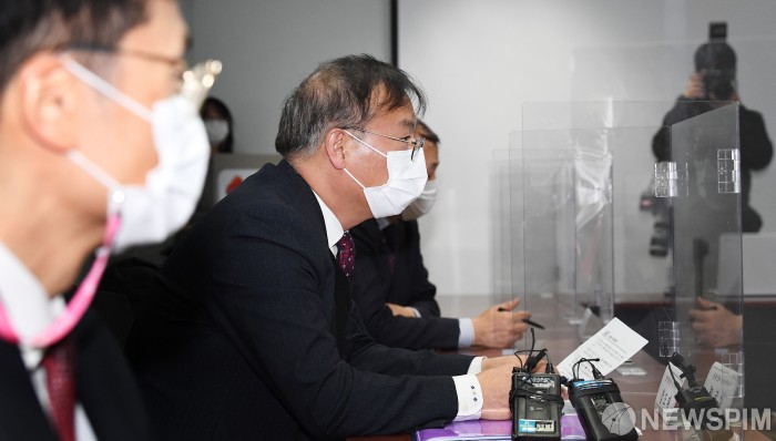 [서울=뉴스핌] 사진공동취재단 = 강도태 보건복지부 제2차관이 2일 오후 서울 중구 보건복지인력개발원 대회의실에서 열린 의정협의체 제1차 회의에서 모두발언을 하고 있다. 2020.12.02 photo@newspim.com