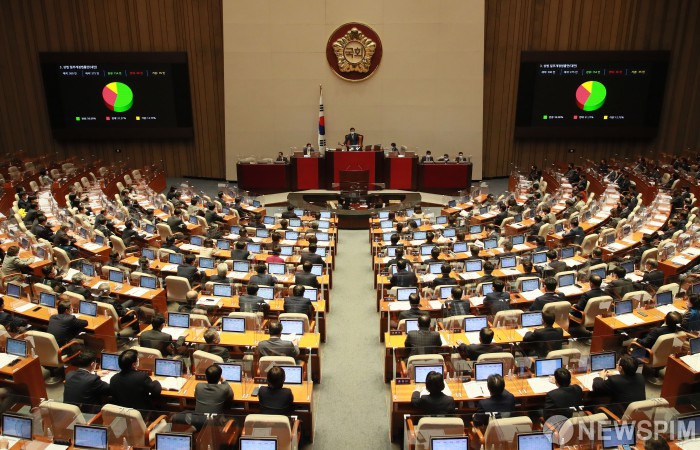 | [서울=뉴스핌] 최상수 기자 = 9일 오후 서울 여의도 국회에서 열린 제382회국회(정기회) 제15차 본회의 전경 2020.12.09 kilroy023@newspim.com |