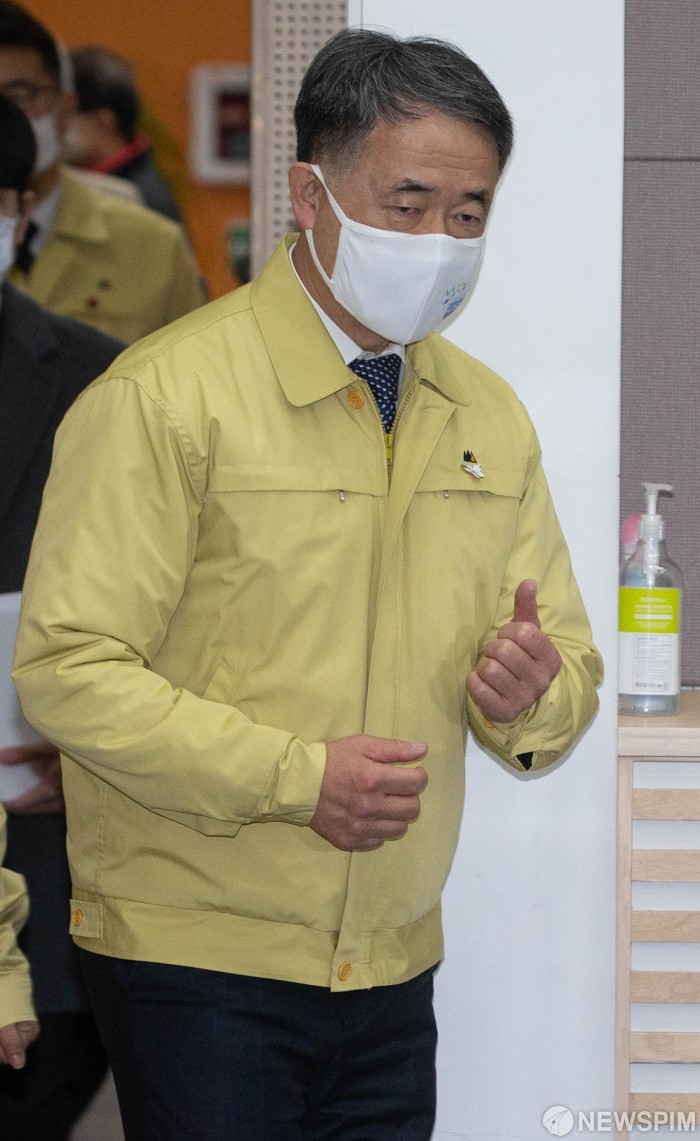 [서울=뉴스핌] 윤창빈 기자 = 박능후 보건복지부 장관이 14일 오전 서울 중구 서울시청에서 열린 수도권 코로나19 상황점검회의에 참석하고 있다. 2020.12.14 pangbin@newspim.com