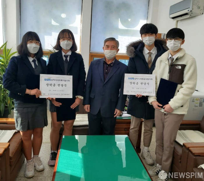 [동해=뉴스핌] 이형섭 기자 = 강원 삼척시사회복지협의회는 지난 14일 한국가스기술공사 삼척기지지사의 후원을 받아 이공계·특성화고 미래인재 양성을 목적으로 총 학생 4명에게 각각 50만원의 장학금을 전달했다. [사진=삼척시청]2020.12.15 onemoregive@newspim.com