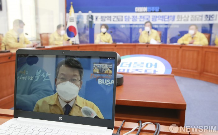 [서울=뉴스핌] 이형석 기자 = 변성완 부산시장 권한대행이 15일 오후 서울 여의도 국회에서 열린 더불어민주당 K-방역 긴급점검 화상회의에서 발언을 하고 있다. 2020.12.15 leehs@newspim.com
