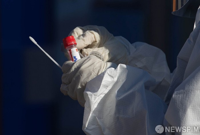 [서울=뉴스핌] 윤창빈 기자 = 17일 오전 서울 중구 서울역 광장에 설치된 임시 선별검사소에서 의료진이 코로나19 검사를 진행하고 있다. 오늘(17일) 0시 기준 신규 확진자는 1천14명으로 이틀째 1천명대를 이어갔다. 특히 서울 지역은 423명으로 역대 최다 확진자를 기록했다. 2020.12.17 pangbin@newspim.com