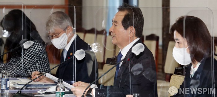 [서울=뉴스핌] 김학선 기자 = 정세균 국무총리가 17일 서울 종로구 정부서울청사에서 열린 국가산학연 협력위원회 회의에서 모두발언을 하고 있다. 2020.12.17 yooksa@newspim.com