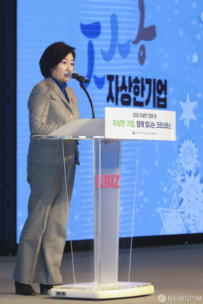 [서울=뉴스핌] 이형석 기자 = 박영선 중소벤처기업부 장관이 17일 오후 서울 여의도 중소기업중앙회에서 열린 2020 자상한 기업의 밤에서 인사말을 하고 있다. 2020.12.17 leehs@newspim.com